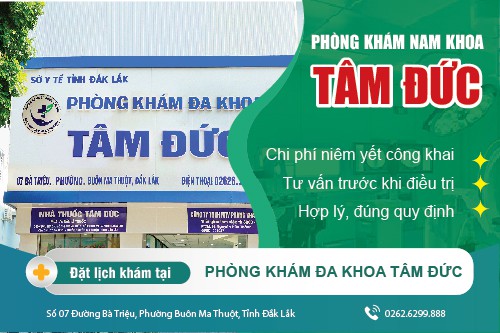 Phòng Khám Đa khoa Tâm Đức (Số 07 Đường Bà Triệu, Phường Buôn Ma Thuột, Tỉnh Đắk Lắk) không chỉ giúp nam giới khắc phục tình trạng suy giảm ham muốn tình dục, yếu sinh lý và tăng cường sinh lý - tăng ham muốn cho phái mạnh bằng các phương pháp hiện đại như trên mà còn mang đến những dịch vụ y tế chất lượng, chuyên nghiệp và chi phí khám chữa bệnh hợp lý. Do đó, hãy đến ngay Phòng Khám Đa Khoa Tâm Đức để được thăm khám và chữa trị kịp thời nếu có những dấu hiệu của bệnh yếu sinh lý, rối loạn cương dương,...