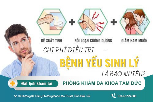 Yếu sinh lý là tình trạng rối loạn chức năng sinh lý, gây cản trở tình dục và dẫn đến vô sinh nam. Việc điều trị bệnh nhanh chóng, hiệu quả và an toàn là điều mà nam giới nào cũng muốn. Tuy nhiên, vì lo lắng mức chi phí điều trị bệnh nhiều nam giới đã chậm trễ trong việc chữa trị.