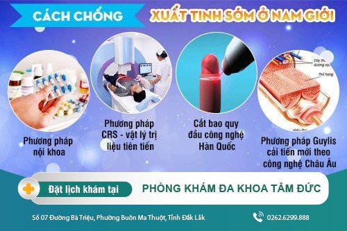 Nếu băn khoăn không biết khám và điều trị xuất tinh sớm ở đâu, cánh mày râu hãy trực tiếp đến Phòng Khám Đa khoa Tâm Đức (Số 07 Đường Bà Triệu, Phường Buôn Ma Thuột, Tỉnh Đắk Lắk) được đánh giá là một trong những địa chỉ khám chữa bệnh nam khoa chất lượng, uy tín.