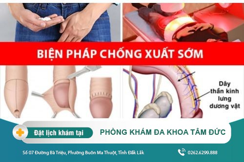 Nếu bạn đang tìm kiếm địa chỉ thực hiện khám chữa các rối loạn chức năng sinh lý, đặc biệt là xuất tinh sớm an toàn và hiệu quả hiện nay, bạn có thể chủ động đến ngay Phòng Khám Đa Khoa Tâm Đức (Số 07 Đường Bà Triệu, Phường Buôn Ma Thuột, Tỉnh Đắk Lắk).