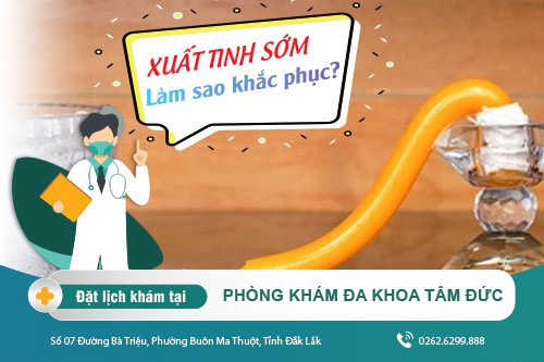 Để được nhanh chóng thoát khỏi xuất tinh sớm thì nam giới có thể an tâm đến với Phòng Khám Đa khoa Tâm Đức (Số 07 Đường Bà Triệu, Phường Buôn Ma Thuột, Tỉnh Đắk Lắk) để được kiểm tra và điều trị sớm nhé. Phòng khám chính là nơi điều trị bệnh nam khoa, các bệnh sinh lý nam giới – rối loạn xuất tinh, xuất tinh sớm với dịch vụ y tế ưu việt như: