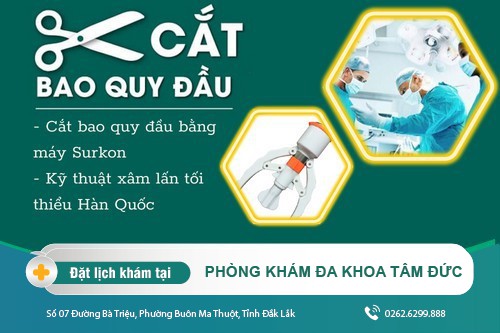 Hiện nay nhiều nam giới đánh giá tốt về dịch vụ y tế và chi phí cắt bao quy đầu tại Phòng Khám Đa khoa Tâm Đức (Số 07 Đường Bà Triệu, Phường Buôn Ma Thuột, Tỉnh Đắk Lắk). Đây là cơ sở chuyên nam khoa uy tín mà các nam giới có thể tham khảo.