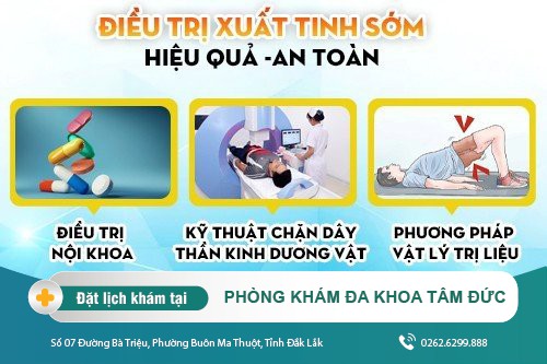Nếu băn khoăn không biết khám và điều trị xuất tinh sớm ở đâu, cánh mày râu hãy trực tiếp đến Phòng Khám Đa khoa Tâm Đức (Số 07 Đường Bà Triệu, Phường Buôn Ma Thuột, Tỉnh Đắk Lắk) – phòng khám được đánh giá là một trong những địa chỉ khám chữa bệnh nam khoa chất lượng, uy tín tại Đắk Lắk.