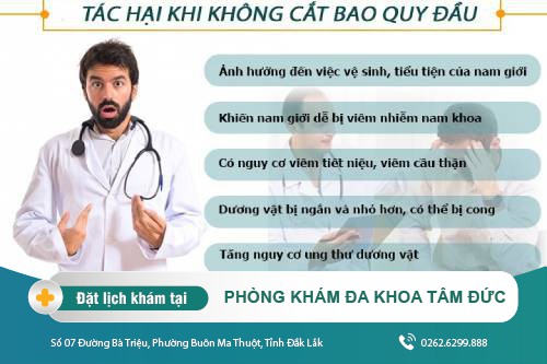 Phái mạnh nếu không cắt bao quy đầu sớm, không những gây ra các bất tiện trong đời sống sinh hoạt cũng như tình dục, mà còn có thể dẫn đến những nguy hại khó lường khác. Cụ thể: