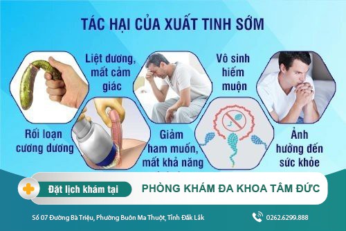 Phòng Khám Đa khoa Tâm Đức (Số 07 Đường Bà Triệu, Phường Buôn Ma Thuột, Tỉnh Đắk Lắk) tự hào là địa chỉ điều trị xuất tinh sớm uy tín - chất lượng tại Đắk Lắk, giúp cho nhiều nam giới vượt qua nỗi lo “nhanh ra” lấy lại bản lĩnh và sự tự tin phái mạnh.