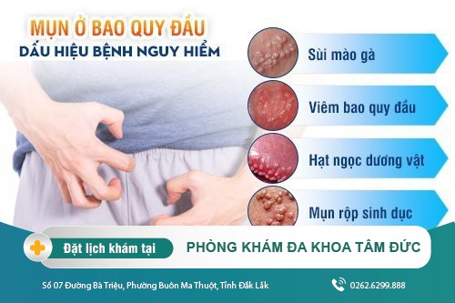 Khi đột ngột xuất hiện mụn bao quy đầu, nam giới không nên chủ quan mà hãy xem xét và di chuyển ngay đến Phòng Khám Đa khoa Tâm Đức. Phòng khám nổi tiếng tại khu vực Đắk Lắk chuyên ứng dụng công nghệ mới trong điều trị các bệnh nam khoa như
