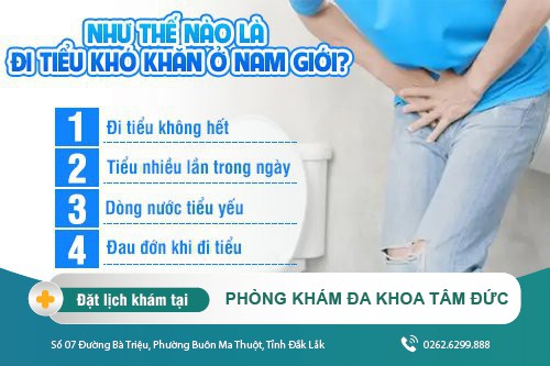 Ở Đắk Lắk, người bệnh hãy an tâm đến Phòng Khám Đa khoa Tâm Đức (Số 07 Đường Bà Triệu, Phường Buôn Ma Thuột, Tỉnh Đắk Lắk) để được khám chữa bệnh tốt. Tại đây, quá trình điều trị sẽ được căn cứ vào nguyên nhân, mức độ ảnh hưởng sẽ đưa ra hướng xử lý chứng đi tiểu khó khăn phù hợp.
