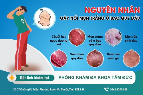 Nổi mụn trắng ở bao quy đầu có thể là dấu hiệu của một loại bệnh sinh lý hoặc bệnh tình dục nào đó, ít nhiều đều có ảnh hưởng đến cuộc sống của nam giới, đặc biệt là khiến các đấng mày râu phải hoang mang, lo lắng vì không biết chúng có ảnh hưởng đến sức khỏe sinh sản về sau hay không. Có không ít nam giới gặp phải hiện tượng này. Vậy nổi mụn trắng ở bao quy đầu có nguy hiểm không? Cách điều trị ra sao? Hãy cùng các bác sĩ Phòng Khám Nam Khoa Đắk Lắk tìm hiểu qua bài viết dưới đây nhé!