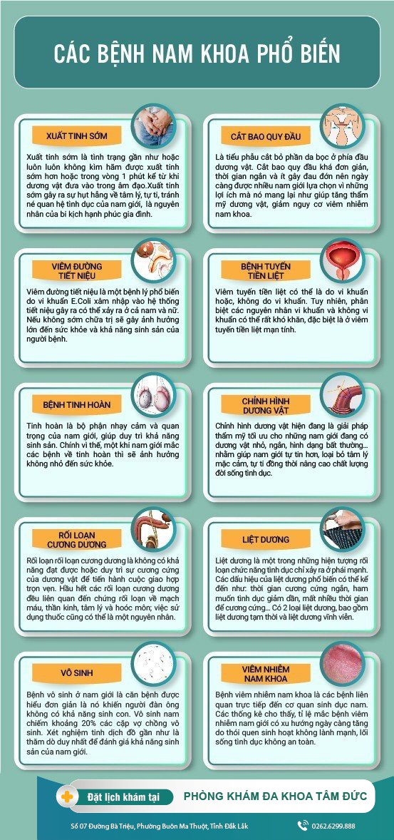 Hiện nay, Phòng Khám Đa khoa Tâm Đức hỗ trợ khám và điều trị các bệnh cho nam giới như: