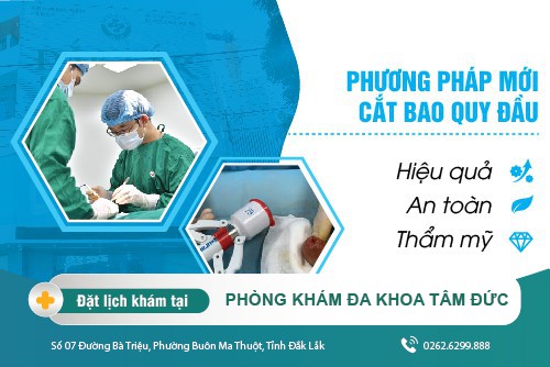 Khi bị dài, hẹp, nghẹt bao quy đầu hoặc có mong muốn thực hiện cắt bao quy đầu để nâng cao sinh lý, nam giới có thể đến Phòng Khám Đa khoa Tâm Đức (Số 07 Đường Bà Triệu, Phường Buôn Ma Thuột, Tỉnh Đắk Lắk) để được các chuyên gia chuyên khoa giỏi, tay nghề cao trực tiếp làm thủ thuật, giúp nam giới nhanh chóng lấy lại phong độ, tự tin hơn trong cuộc sống, đặc biệt là trong đời sống tình dục. Bên cạnh đó, còn đảm bảo được những yếu tố khác như: