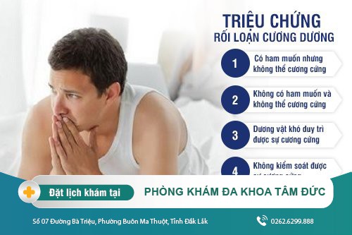 Do đó, người bệnh cần theo dõi những triệu chứng của rối loạn cương dương để sớm phát hiện bệnh, nhằm đẩy nhanh tiến trình điều trị.