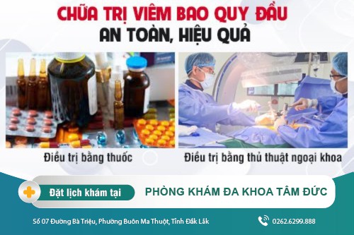 Phòng Khám Đa khoa Tâm Đức (Số 07 Đường Bà Triệu, Phường Buôn Ma Thuột, Tỉnh Đắk Lắk) được xây dựng dựa trên nền tảng y khoa chất lượng và dịch vụ y tế hiện đại, bệnh viêm bao quy đầu sẽ được điều trị khỏi nhanh chóng bởi những phương pháp điều trị mới như: