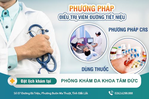 Tại Phòng Khám Đa khoa Tâm Đức (Số 07 Đường Bà Triệu, Phường Buôn Ma Thuột, Tỉnh Đắk Lắk), bệnh viêm đường tiết niệu đã được các chuyên gia nghiên cứu ra phương pháp chữa trị khỏi hiệu quả và đã ứng dụng thành công cao.Sau khi khám, kiểm tra cụ thể, chẩn đoán mức độ nặng hay nhẹ của bệnh mà bác sĩ đưa ra phác đồ điều trị thích hợp.
