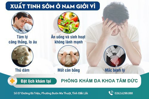 Tại Đắk Lắk, Phòng Khám Đa khoa Tâm Đức (Số 07 Đường Bà Triệu, Phường Buôn Ma Thuột, Tỉnh Đắk Lắk) tự hào là cơ sở chuyên khoa uy tín - chất lượng, được đánh giá cao trong công tác thăm khám và hỗ trợ điều trị các bệnh lý nam khoa, đặc biệt là chứng xuất tinh sớm.